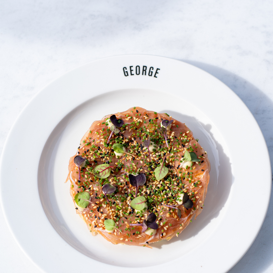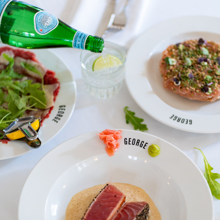 All the George classics you love — from brasserie favorites to fresh salads and island-inspired specials. Perfect for sharing and designed to fit group menus, walking dinners, or seated meals.