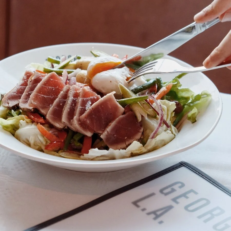 Our George L.A. menu combines everything you love about a French brasserie with a hint of comfort and charm. Expect fresh seafood, perfectly grilled meats, and all the classics — from poached eggs on brioche to steak frites, linguine vongole, and whole rotisserie chicken.