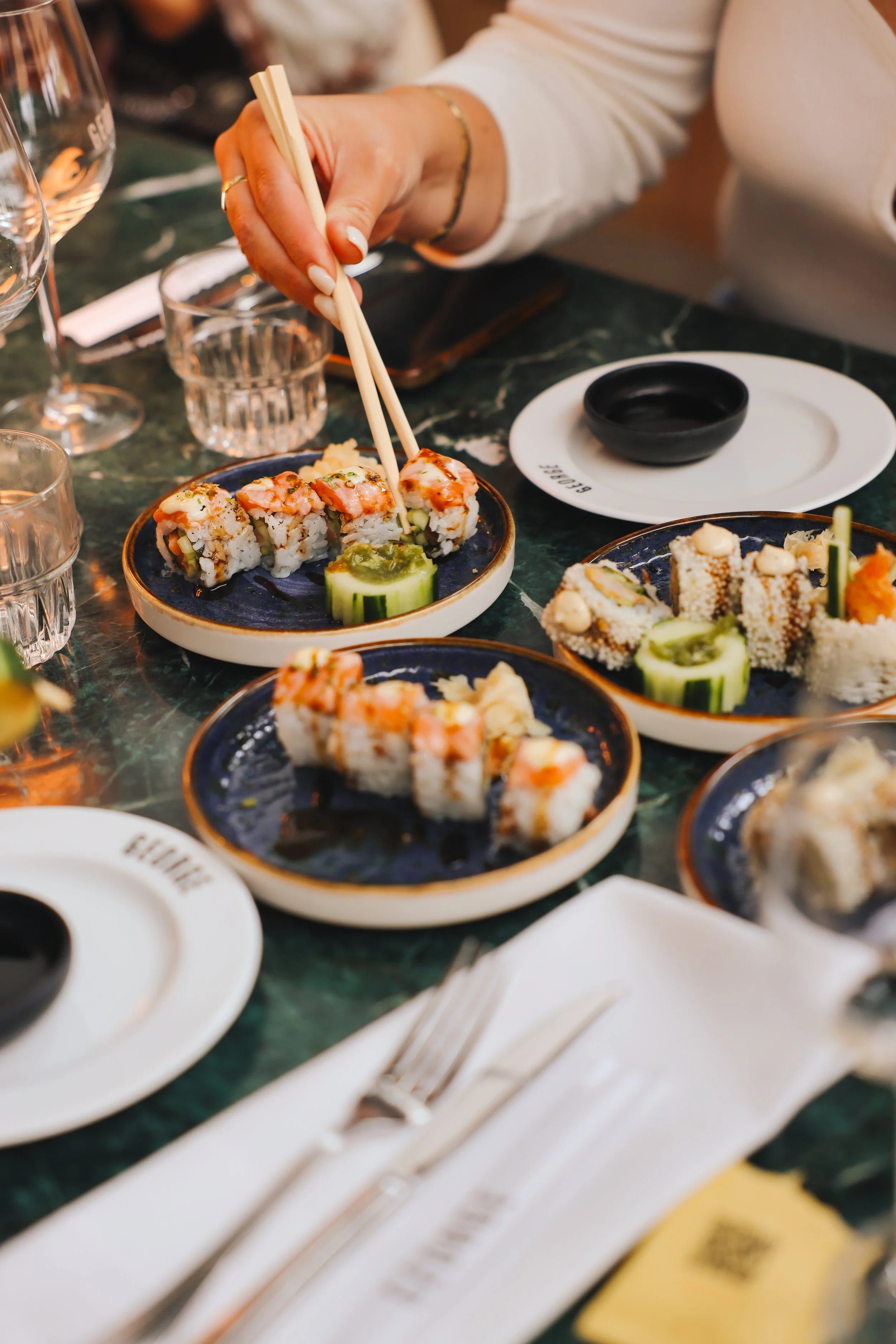 Our menu is Asian-inspired — think sushi rolls, dim sum, and dishes made for sharing. For groups, we offer set menus, walking dinners, and even a summer barbecue. Don’t worry — there’s always something for everyone (including vegetarians).